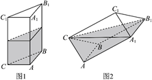 图 1 是一个水平放置且高为 6 的直三棱柱容器 $A B C-A_1 B_1 C_1$, 现往内灌进一些水, 设水深为 $h$. 将容器底面的一边 $A B$ 固定于地面上, 再将容器倾斜, 当倾斜到某一位置时, 水面形状恰好为 $\triangle A_1 B_1 C$, 如图 2 , 则 $h=(\quad)$