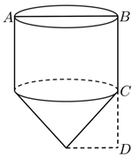 民间娱乐健身工具陀螺起源于我国, 最早出土的石制陀螺是在山西夏县发现的新石器时代遗址. 如图所示的是一个陀螺的立体结构图.已知. 底面圆的直径 $A B=16{ }^{c m}$, 圆柱体部分的高 $B C=8 \mathrm{~cm}$, 圆锥体部分的高 $C D=$ $6{\mathrm{cm}}$ ,则这个陀螺的表面积是 ( )