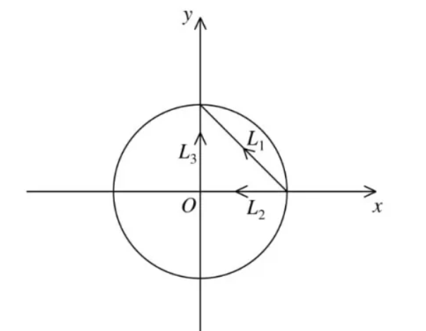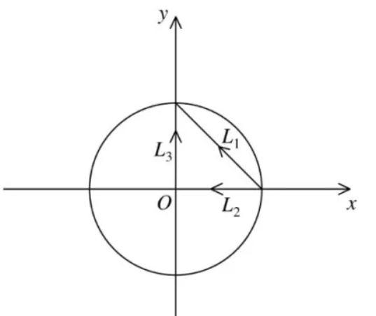 分别在单位圆中沿路径(1)$L_1$ ,路径(2)$L_2+L_3$ 计算积分 $\int_L z d z$ .