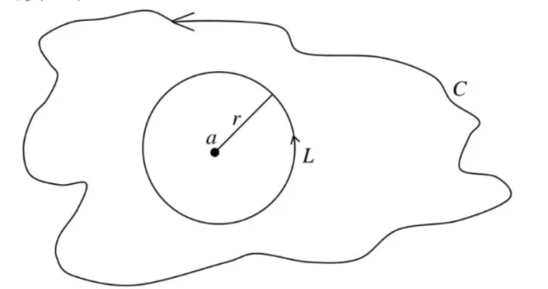 计算积分 $\oint_C \frac{d z}{(z-a)^n}, C$ 是将 $a$ 点围在其中的任意一条曲线,如图所示.