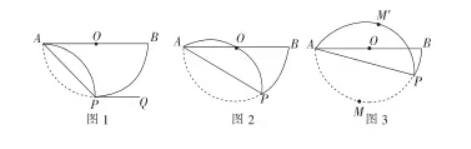 (3)如图 3.$M$ 为 $\widehat{A P}$ 的中点,$M$ 为点 $M$ 关于弦 $A P$ 的对称点,当 $\angle P A B=15^{\circ}$ 时,直接写出点 $M$ 与点 $M'$之间的距离约为 $\qquad$ cm .(结果保留两位小数,参考数据: $\sin 15^{\circ} \approx 0.26, \tan 15^{\circ} \approx 0.27$)