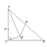 如图,在 Rt $\triangle A B C$ 中,$\angle A C B=90^{\circ}, A C=B C=2 \sqrt{2}$ ,点 $D$ 为 $A B$ 的中点,点 $P$ 在 $A C$ 上,且 $C P=1$ ,将 $C P$ 绕点 $C$ 在平面内旋转,点 $P$ 的对应点为点 $Q$ ,连接 $A Q, D Q$ .当 $\angle A D Q=90^{\circ}$ 时,$A Q$ 的长为 $\qquad$