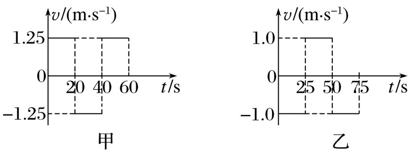 甲、乙两名运动员在泳池里训练,t=0时刻从泳池的两端出发,甲、乙的速度-时间图像分别如图甲、乙所示,若不计转向的时间且持续运动,两运动员均可视为质点,下列说法正确的是