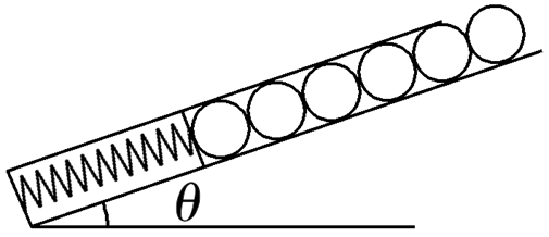如图所示,为一种倾斜放置的装取台球的装置,圆筒底部有一轻质弹簧,每个台球的质量均为m,半径均为R,圆筒的内径略大于台球的直径.当将筒口处台球缓慢取走后,又会冒出一个台球,刚好到达被取走台球的位置.若圆筒与水平面之间的夹角为θ,重力加速度为g,忽略球与筒间的摩擦力.则弹簧的劲度系数为