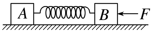 如图所示,水平地面上有重力均为40 N的A、B两木块,它们之间夹有被压缩了2.0 cm的轻质弹簧,已知弹簧的劲度系数k=400 N/m,两木块与水平地面间的动摩擦因数均为0.25,系统处于静止状态.现用F=10 N的水平力推木块B,假设最大静摩擦力等于滑动摩擦力,则力F作用后