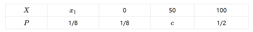 求:(1)常数 $c$ 与 $x_1$ 的值;(2)$X$ 的分布函数 $F(x)$ 。
