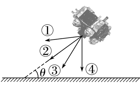 如图,某飞行器在月球表面起飞后,一段时间内沿与月面夹角为θ的直线做加速运动.此段时间飞行器发动机的喷气方向可能沿