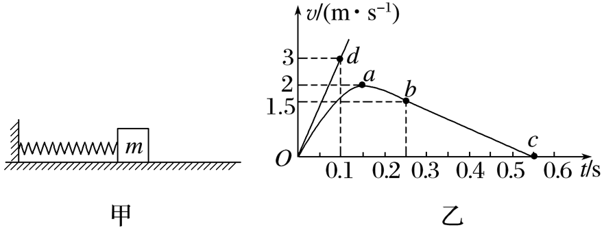 如图甲所示,水平地面上轻弹簧左端固定,右端通过小物块压缩0.4 m后锁定,t=0时解除锁定,释放小物块.计算机通过小物块上的速度传感器描绘出它的v-t图线如图乙所示,其中Oab段为曲线,bc段为直线,倾斜直线Od是t=0时图线的切线,已知小物块的质量为m=2 kg,重力加速度取g=10 m/s2,则下列说法正确的是