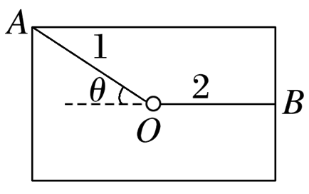 如图所示,一个小球O用1、2两根细绳连接并分别系于箱子上的A点和B点,OA与水平方向的夹角为θ,OB水平,开始时箱子处于静止状态,下列说法正确的是