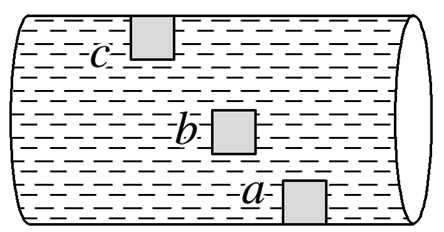 如图,圆柱形玻璃容器内装满液体静置于水平面上,容器中有a、b、c三个不同材质的物块,物块a、c均对容器壁有压力,物块b悬浮于容器内的液体中,忽略a、c与容器壁间的摩擦.现给容器施加一个水平向右的恒力,使容器向右做匀加速直线运动.下列说法正确的是