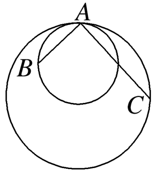 如图所示,在竖直平面内有半径为R和2R的两个圆,两圆的最高点相切,切点为A.B和C分别是小圆和大圆上的两个点,其中AB长为 ,AC长为 .现沿AB和AC建立两条光滑轨道,自A处由静止释放小球(可看为质点),已知小球沿AB轨道运动到B点所用时间为t1,沿AC轨道运动到C点所用时间为t2,则t1与t2之比为