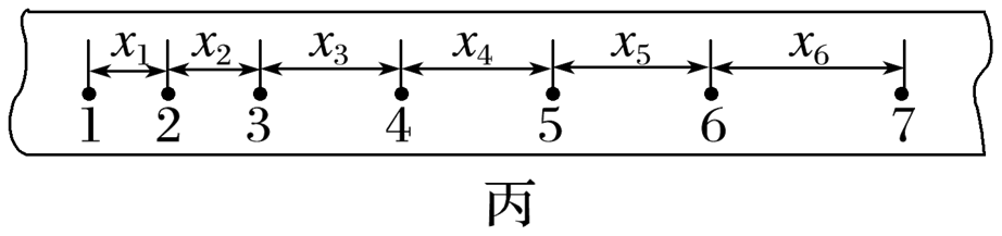 (2)实验中打出的一条纸带如图丙所示,打点计时器打点的周期T=0.02 s,在纸带上依次标上1、2、3、4、5、6、7计数点,相邻两个计数点之间还有四个点没有画出来,测得x1=7.35 cm、x2=9.44 cm、x3=11.56 cm、x4=13.65 cm、x5=15.86 cm、x6=17.97 cm.利用以上数据可知,打该纸带时滑块的加速度大小a= m/s2(结果保留三位有效数字);