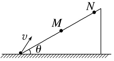 如图所示,一小球(视为质点)以速度v从倾角为θ的斜面底端斜向上抛出,落到斜面上的M点且速度水平向右.现将该小球以2v的速度从斜面底端朝同样方向抛出,落在斜面上的N点.下列说法正确的是