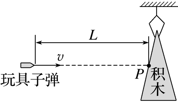 如图所示,在竖直平面内,截面为三角形的小积木悬挂在离地足够高处,一玩具枪的枪口与小积木上P点等高且相距为L.当玩具子弹以水平速度v从枪口向P点射出时,小积木恰好由静止释放,子弹从射出至击中积木所用时间为t.不计空气阻力.下列关于子弹的说法正确的是
