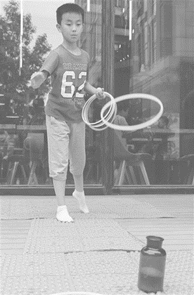 如图,某次游戏中,一小孩从距地面高0.45 m处水平抛出半径为0.1 m的圆环(圆环面始终水平),套住了距圆环前端水平距离为1.0 m、高度为0.25 m的竖直细圆筒.若重力加速度大小取g=10 m/s2,忽略空气阻力,则小孩抛出圆环的初速度可能是