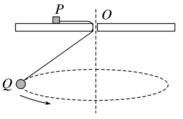 如图所示,一根细线下端拴一个金属小球Q,细线穿过小孔(小孔光滑)另一端连接在金属块P上,P始终静止在水平桌面上,若不计空气阻力,小球在某一水平面内做匀速圆周运动(圆锥摆).实际上,小球在运动过程中不可避免地受到空气阻力作用.因阻力作用,小球Q的运动轨迹发生缓慢的变化(可视为一系列半径不同的圆周运动).下列判断正确的是