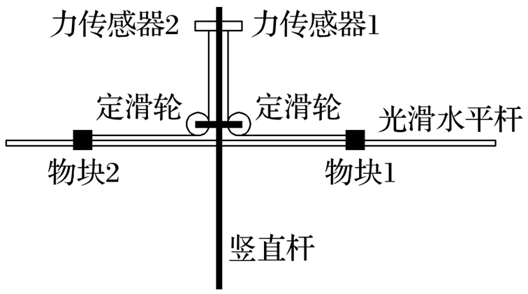 某同学设计了用如图所示装置探究向心力与质量、半径关系的实验.水平杆光滑,竖直杆与水平杆铰合在一起,互相垂直,绕过定滑轮的细线两端分别与物块和力传感器连接.