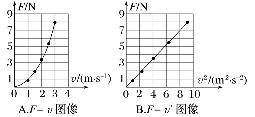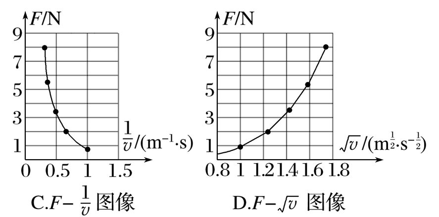 该同学利用实验数据作出了以下四个图像,其中能较为直观地展示向心力F与线速度v关系的图像是