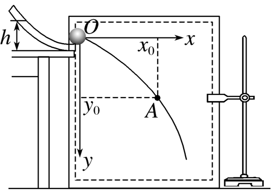 在“研究平抛运动”实验中,以小钢球离开轨道末端时球心位置为坐标原点O,建立水平与竖直坐标轴.让小球从斜槽上离水平桌面高为h处静止释放,使其水平抛出,通过多次描点可绘出小球做平抛运动时球心的轨迹,如图所示.在轨迹上取一点A,读取其坐标(x0,y0),重力加速度为g.