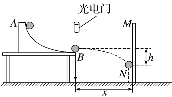 Ⅱ.实验装置中固定轨道AB的末端水平,在轨道末端安装一光电门,光电门通过数据采集器与计算机相连,测量小球离开轨道时的速度.将小球从轨道的某高度处由静止释放,小球运动一段时间后,打到竖直记录屏MN上,记下落点位置.然后通过手机传感器的测距功能,测量并记录小球做平抛运动的水平距离x和竖直下落距离h;