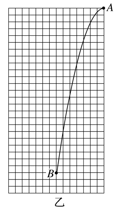 让一个粘有红色粉末的小球以一定初速度沿方格纸的某条横线射出,在纸上留下滚动的痕迹.小迪利用手机对小球滚动的过程进行录像,并从录像中读取到小球从A点运动到B点(如图乙所示)的时间为t.当地重力加速度为g,小球在方格纸上的滚动摩擦可忽略,根据题中信息,完成下列问题: