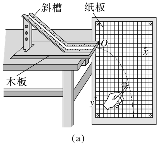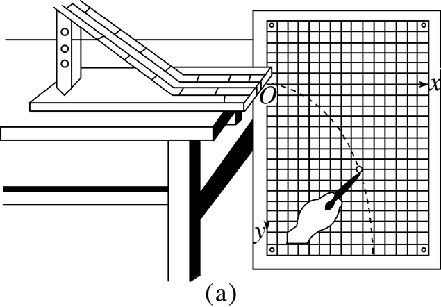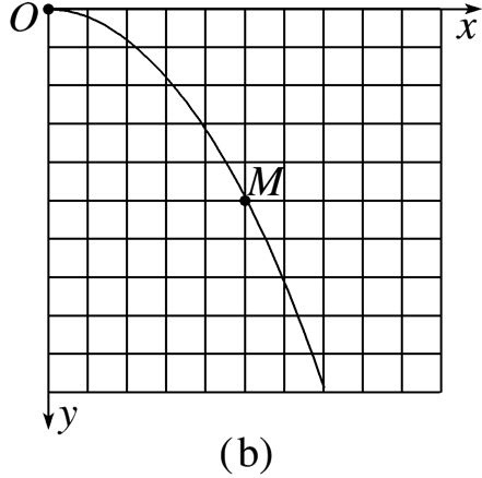 (2)甲同学按正确的操作完成实验并描绘出平抛运动的轨迹,以平抛运动的初始位置O为坐标原点建立xOy坐标系,如图(b)所示.从运动轨迹上选取多个点,根据其坐标值可以验证轨迹符合y=ax2的抛物线.若坐标纸中