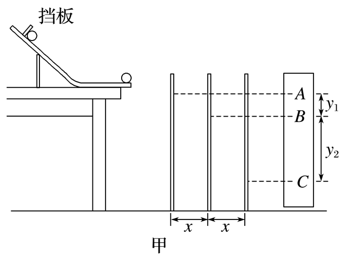 D.将木板再水平向右平移同样距离x,使小球仍从斜槽上紧靠挡板处由静止滚下,再在白纸上得到痕迹C若测得A、B间距离为y1,B、C间距离为y2,已知当地的重力加速度为g.