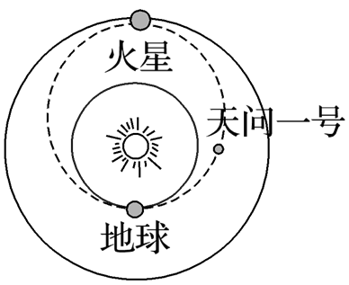 2021年5月15日,中国火星探测工程执行探测任务的飞船“天问一号”着陆巡视器成功着陆于火星乌托邦平原南部预选着陆区.若飞船“天问一号”从地球上发射到着陆火星,运动轨迹如图中虚线椭圆所示,飞向火星过程中,太阳对飞船“天问一号”的引力远大于地球和火星对它的吸引力,认为地球和火星绕太阳做匀速圆周运动.下列说法正确的是