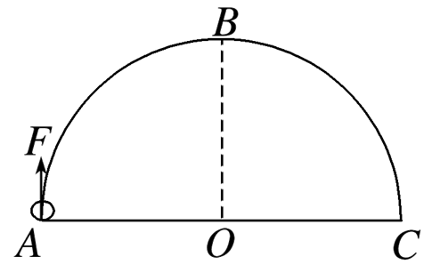 如图所示,一半圆弧形细杆ABC竖直固定在水平地面上,AC为其水平直径,圆弧半径BO=3.6 m.质量为m=4.0 kg的小圆环(可视为质点,小环直径略大于杆的)套在细杆上,在大小为50 N、方向始终沿圆的切线方向的拉力F作用下,从A点由静止开始运动,到达B点时对细杆的压力恰好为0.已知π取3.14,重力加速度g取10 m/s2,在这一过程中摩擦力做功为