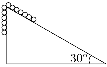 如图所示,有一条长为L=1 m的均匀金属链条,有一半在光滑的足够高的斜面上,斜面顶端是一个很小的圆弧,斜面倾角为30°,另一半竖直下垂在空中,当链条从静止开始释放后链条滑动,则链条刚好全部滑出斜面时的速度为(g取10 m/s2)