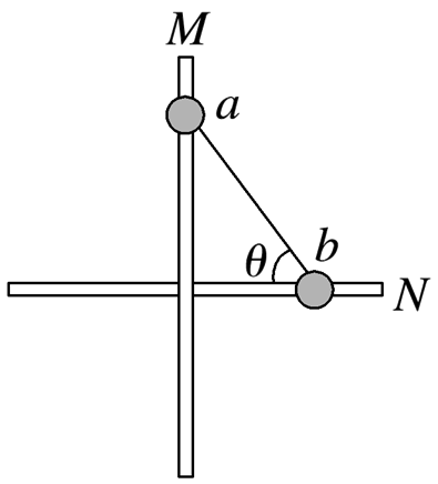如图所示,竖直平面内固定两根足够长的细杆M、N,两杆无限接近但不接触,两杆间的距离可忽略不计.两个小球a、b(可视为质点)的质量相等,a球套在竖直杆M上,b球套在水平杆N上,a、b通过铰链用长度为L=0.5 m的刚性轻杆连接,将a球从图示位置由静止释放(轻杆与N杆的夹角为θ=53°),不计一切摩擦,已知