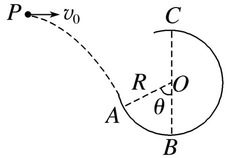如图,一个质量为0.9 kg的小球以某一初速度从P点水平抛出,恰好从光滑圆弧ABC的A点沿切线方向进入圆弧(不计空气阻力,进入圆弧时无机械能损失).已知圆弧的半径R=0.3 m,θ=60°,小球到达A点时的速度vA=4 m/s.(取g=10 m/s2)下列说法正确的是