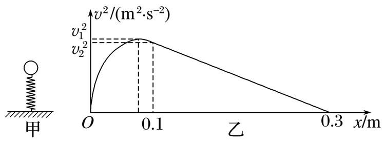 如图所示,把质量为0.4 kg的小球放在竖直放置的弹簧上,并将小球缓慢向下按至图甲所示的位置,松手后弹簧将小球弹起,小球上升至最高位置的过程中其速度的平方随位移的变化图像如图乙所示,其中0.1~0.3 m的图像为直线,弹簧的质量和空气的阻力均忽略不计,重力加速度g=10 m/s2,则下列说法正确的是