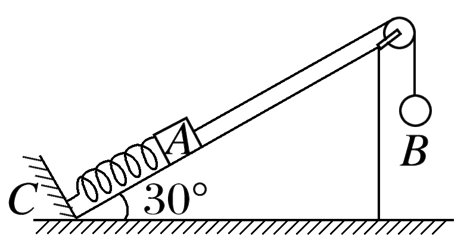 如图所示,在倾角为θ=30°的光滑斜面上,一劲度系数为k=200 N/m的轻质弹簧一端固定在挡板C上,另一端连接一质量为m=4 kg的物体A,一轻细绳通过定滑轮,一端系在物体A上,另一端与质量也为m的物体B相连,细绳与斜面平行,斜面足够长,B距地面足够高.用手托住物体B使绳子刚好伸直且没有拉力,然后由静止释放.取重力加速度g=10 m/s2.求: