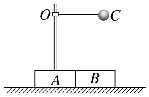 质量均为m的木块A和B,并排放在光滑水平面上,A上固定一竖直轻杆,轻杆上端的O点系一条不可拉伸的长为l的细线,细线另一端系一个可以看作质点的球C,质量也为m.现将C球拉起使细线水平自然伸直,并由静止释放C球,重力加速度为g.求: