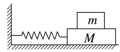 如图所示,质量为m的物块放置在质量为M的木板上,木板与弹簧相连,它们一起在光滑水平面上做简谐运动,周期为T,振动过程中m、M之间无相对运动,设弹簧的劲度系数为k,物块和木板之间的动摩擦因数为μ,则下列说法正确的是
