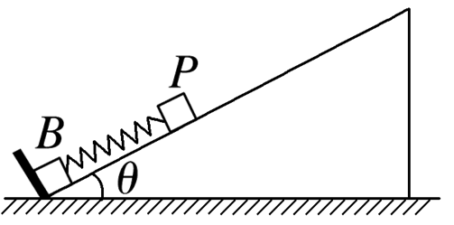$\text{D.}$ $P$ 以最大振幅振动时,$B$ 对挡板的最大压力为 $M g \sin \theta+2 m g \sin \theta$