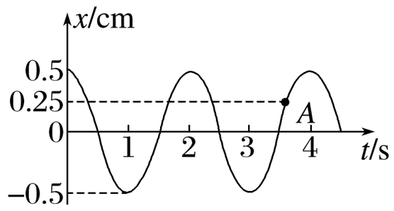 $\text{A.}$ 图中A点对应时刻振动物体所受的回复力大小为5 N,方向指向x轴的负方向