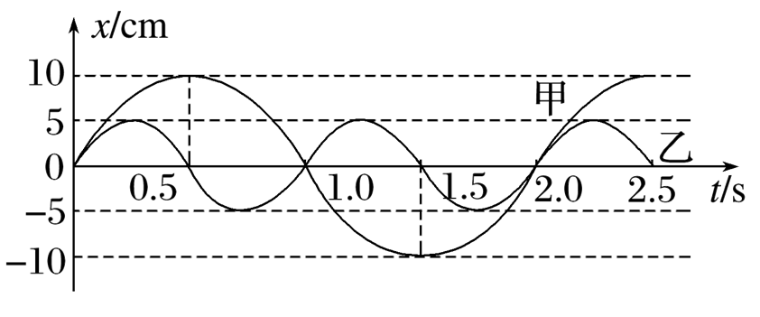 $\text{B.}$ 两弹簧振子所受回复力最大值之比F甲∶F乙=2∶1