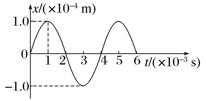 $\text{D.}$ 纸盆中心做简谐运动的方程为 $x=1.0 \times 10^{-4} \cos 50 \pi t(m)$