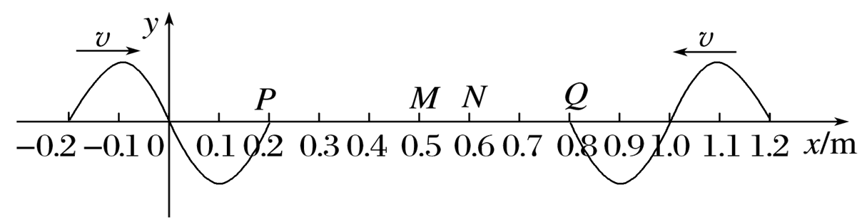 两列简谐横波分别沿x轴正方向和负方向传播,两波源分别位于x轴上-0.2 m和1.2 m处,两波的波速均为0.4 m/s,波源的振幅均为2 cm.如图为t=0时刻两列波的图像,此刻平衡位置在x轴上0.2 m和0.8 m的P、Q两质点开始振动.质点M、N的平衡位置分别处于x轴上0.5 m和0.6 m 处.求: