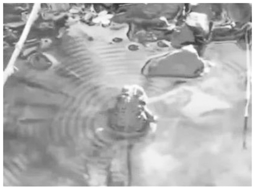 如图所示,蟾蜍在池塘边平静的水面上鸣叫,形成了水波.已知水波的传播速度与水的深度成正相关,蟾蜍的鸣叫频率f=1 451 Hz.下列说法正确的是