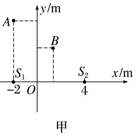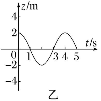 在一列沿水平直线传播的简谐横波上有相距4 m的A、B两点,如图甲、乙分别是A、B两质点的振动图像.已知该波波长大于2 m,求这列波可能的波速.