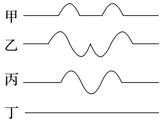 $\text{D.}$ $\delta=T$ 时,波形如图丁所示