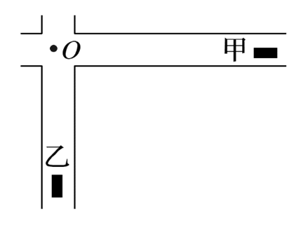 两辆汽车甲与乙,在t=0时刻,分别距十字路O处的距离为x甲和x乙.两车分别以速率v甲和v乙沿水平的、相互正交的公路匀速前进,如图所示.汽车甲持续地以固定的频率f0鸣笛,则在任意时刻t汽车乙的司机所检测到的笛声频率将如何变化(已知声速为u,且有u>v甲、u>v乙)