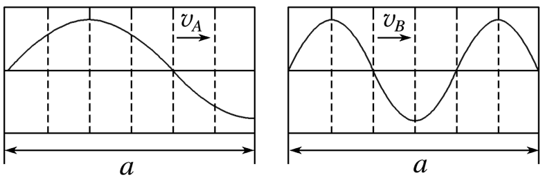 A、B为同一波源发出的两列波,某时刻在不同介质、相同距离上的波形如图所示,则两列波的波速大小之比vA∶vB是