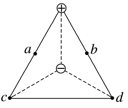 如图所示,在正四面体的两个顶点分别固定电荷量为Q的等量异种点电荷,a、b是它们各自所在棱的中点,c、d为正四面体的另外两个顶点,则以下判断正确的是