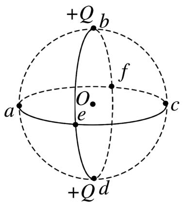如图所示,a、b、c、d、e、f是以O为球心的球面上的点,平面aecf与平面bedf垂直,分别在b、d两点处放有等量同种点电荷+Q,取无穷远处电势为零,则下列说法正确的是