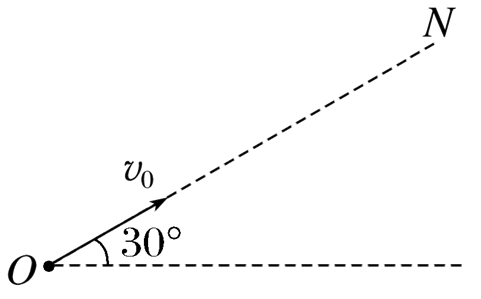 如图所示,一质量为 $m$ 、电荷量为 $q$ 的小球在电场强度大小为 $E$ 、区域足够大的匀强电场中,以初速度 $v_0$ 沿 $O N$ 在竖直面内做匀变速直线运动.$O N$ 与水平面的夹角为 $30^{\circ}$ ,重力加速度为 $g$ ,且 $m g=q E$ ,则