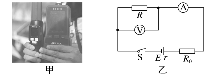 交警使用的某型号酒精测试仪如图甲所示,其工作原理如图乙所示,传感器电阻R的阻值随气体中酒精浓度的增大而减小,电源的电动势为E,内阻为r,电路中的电表均为理想电表.当一位酒驾驾驶员对着测试仪吹气时,下列说法中正确的是